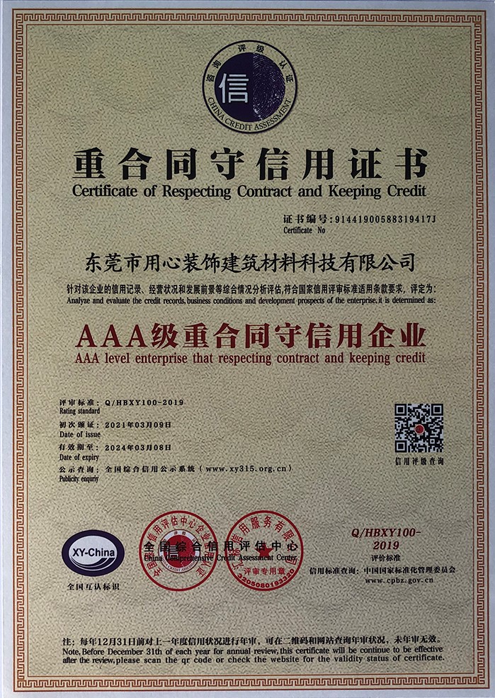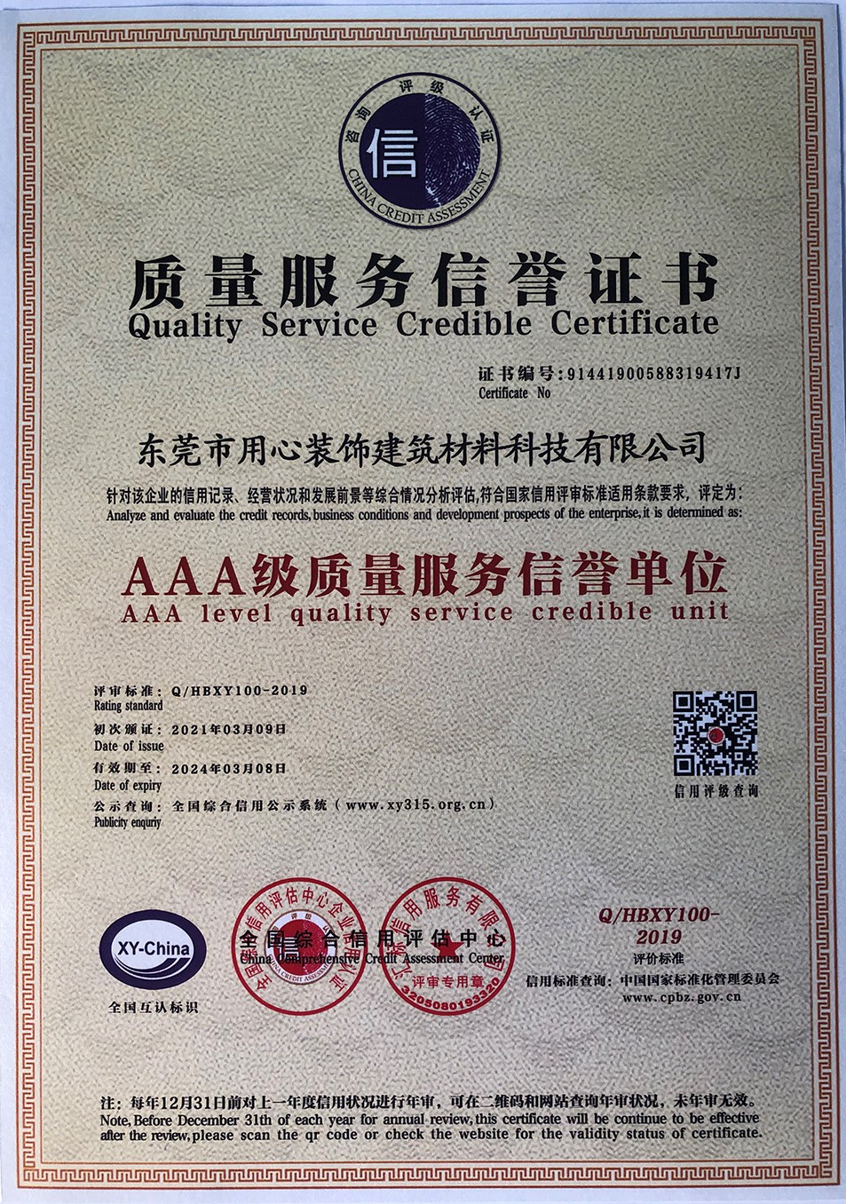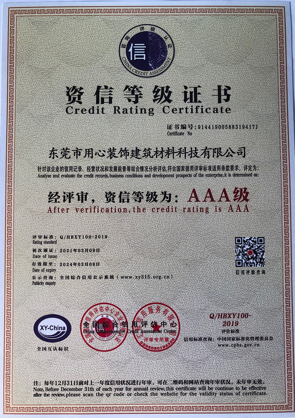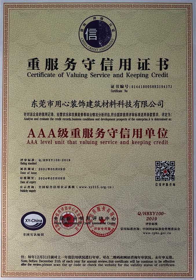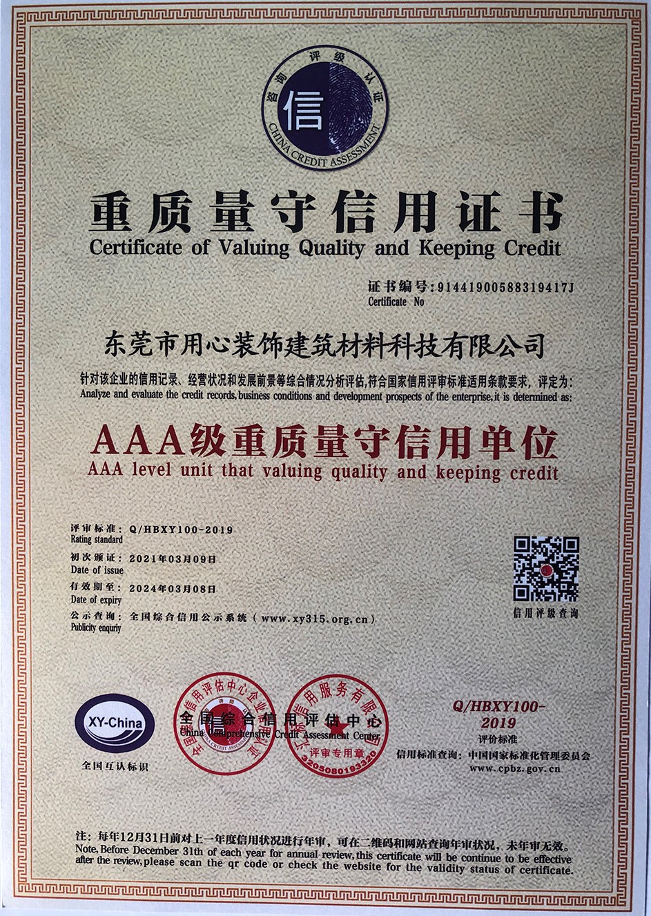 東莞市用心裝飾建筑材料科技有限公司前身成立于2002年5月雅麗美裝飾工程部, 公司注冊(cè)資本:人民幣五佰萬(wàn)元,公司集新型環(huán)保裝飾材料研發(fā)、生產(chǎn)、銷售、安 裝、服務(wù)、施工集于一體的實(shí)業(yè)型綜合性企業(yè),公司專注環(huán)保裝飾材料的開發(fā)與實(shí)際 應(yīng)用,旨在為客戶提供優(yōu)質(zhì)的裝飾產(chǎn)品和人性化居住環(huán)境解決方案。