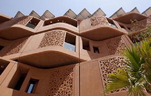 有管線穿過GRC幕墻時(shí),對(duì)建筑立面的藝術(shù)效果影響很大,應(yīng)盡可能避免。但有的工程特別是舊建筑改造工程,管線只能穿過墻體入戶。對(duì)此,應(yīng)設(shè)計(jì)管線穿過GRC墻板的構(gòu)造。